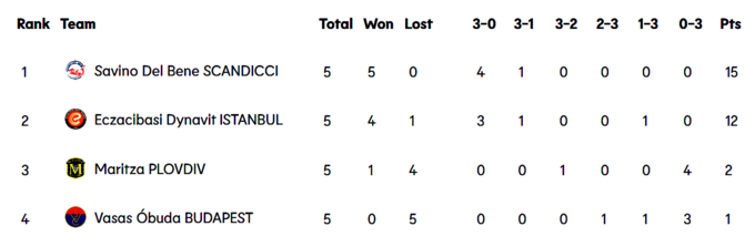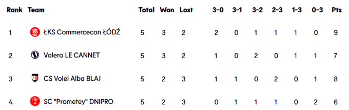 Состоялись матчи пятого тура группового этапа Лиги чемпионов по волейболу среди женщин. Накануне волейболистки «Прометея» из Днепра нанесли поражение французскому «Волеро» 3:1. Теперь в турнирной таблице группы Е очень сложная ситуация (от первого места до четвертого всего три очка) и подопечные Ивана Петкова сохраняют шансы уйти с последнего места и остаться в еврокубках.