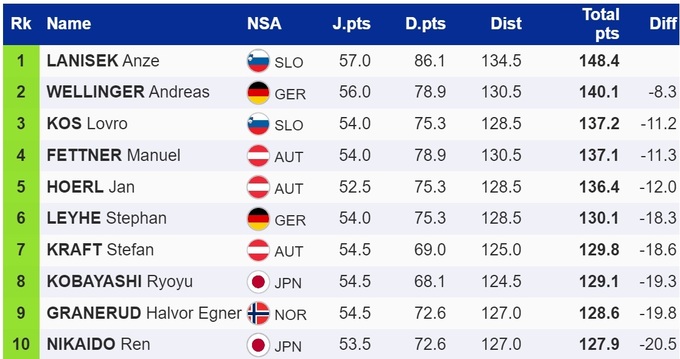 Победу в квалификации одержал словенец Анже Ланишек, который опередил немца Андреаса Веллингера и партнера по команде Ловро Коса.