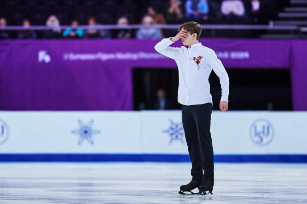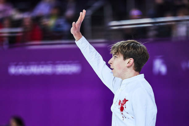 Украинский фигурист Иван Шмуратко выступил с «пятном крови» на рубашке в произвольной программе чемпионата Европы 2024 по фигурному катанию.