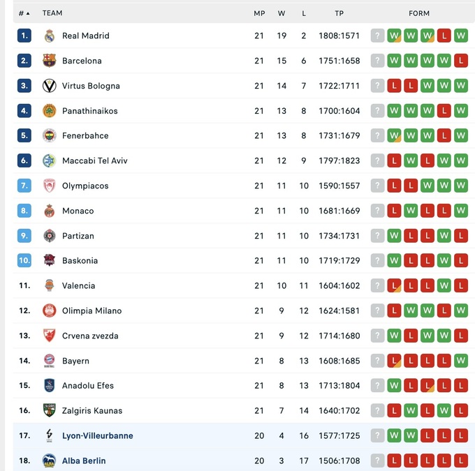 Евролига. Регулярный чемпионат, 21-й раунд. 12 января.