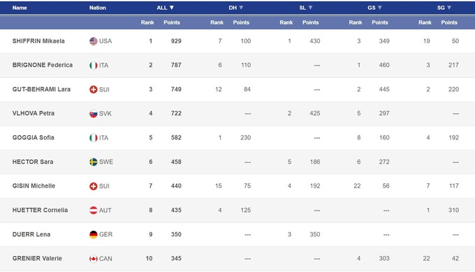 Может занести себе в актив этап в Альтенмаркте Лара Гут-Бехрами: у лидера сборной Швейцарии – третье и первое места в двух супергигантах и попадание в топ-6 скоростного спуска. Продолжает прибавлять Мишель Гизин, а вот Коринн Сутер и Ясмин Флюри австрийский этап откровенно провалили.