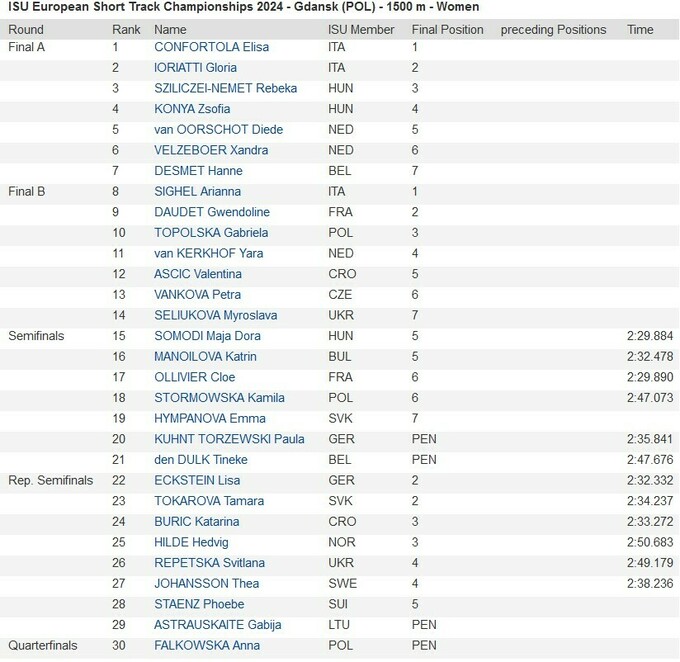 ЧЕ по шорт-треку. Итальянки сделали дубль, Селюкова - в финале В