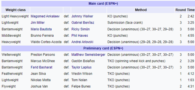 В главном бою встретились: Магомед Анкалаев (17–1–1, 1 NC) и Джонни Уокер (Бразилия, 21–7, 1 NC)