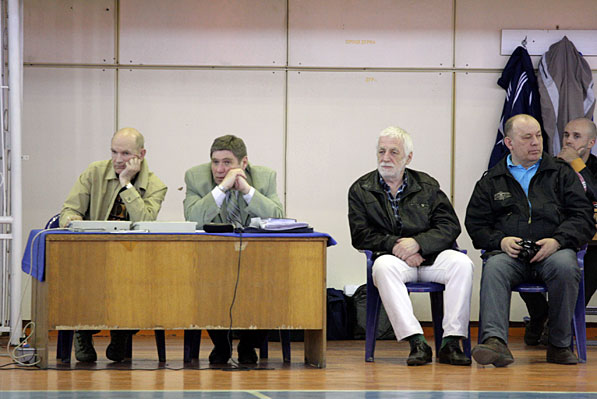 Виталий Брунько уходит от Сергея Мельника. Сергей Конопчук внимательно изучает технику партнера