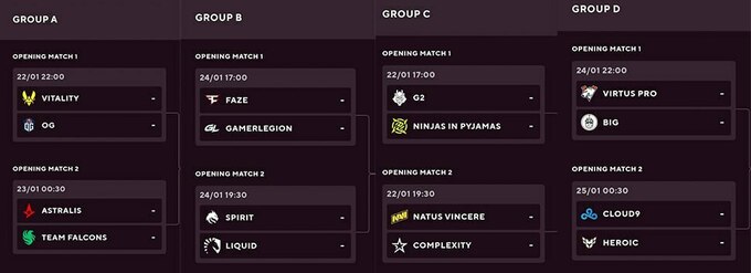 Лишь одна украинская команда прошла напрямую на турнир. NAVI стартует с игры против Complexity 22 января в 15:30.