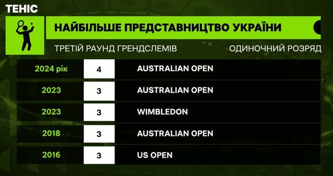 Это исторический рекорд для украинского тенниса на всех турнирах Grand Slam. Ранее три теннисистки доходили до третьего раунда на Australian Open (2018, 2023) и US Open (2016), а также на Уимблдоне 2023.