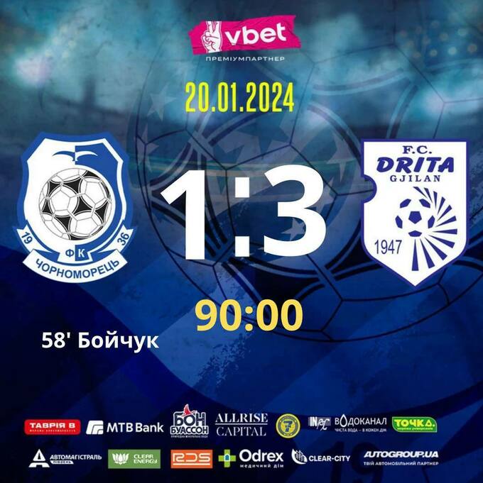 Сегодня, 20 января, состоялся товарищеский спарринг между одесским «Черноморцем» и бронзовым призером чемпионата Косово ФК «Дрита».
