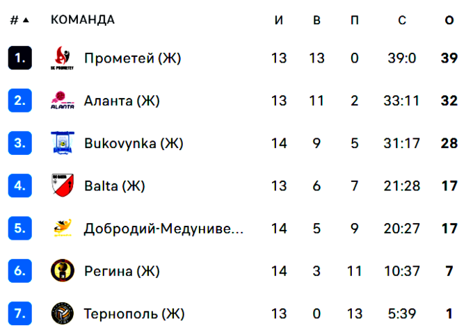 Вот как выглядит турнирное положение команд после 7 туров (два матча из 5 тура «Аланта» - «Балта» и «Галычанка-ЗУНУ» - «Прометей» будут сыграны в феврале):