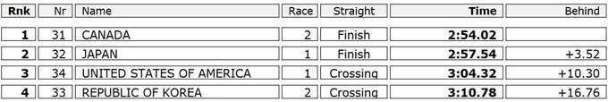 В мужской гонке американцы опередили канадцев на 0.04 секунды