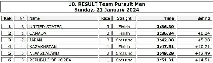 В заключительный, третий день чемпионата четырех континентов 2024 по конькобежному спорту в американском Солт-Лейк-Сити первые комплекты наград разыграли в командной гонке преследования.