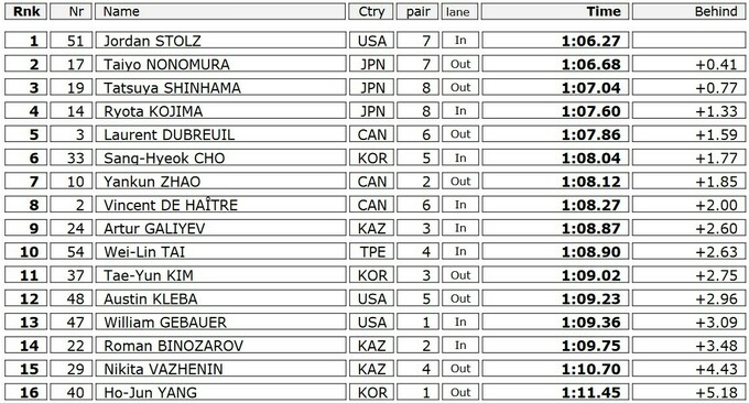 Любимец американских болельщиков Джордан Столц победил в мужской гонке с отрывом в 0.41 секунды от японского спортсмена Таийо Нономуры, который занял второе место. При этом Столц установил новый национальный рекорд на этой дистанции – предыдущий, который принадлежал 11-кратному чемпиону мира и двукратному олимпийскому чемпиону Шани Дэвису, продержался почти 15 лет. Замкнул призовую тройку еще один японец Тацуя Синхама, который мог опередить Столца, но потерял темп на последнем круге.