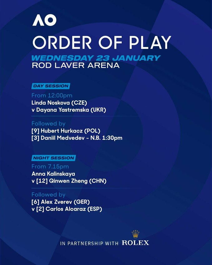 24 января на Открытом чемпионате Австралии по теннису будут сыграны поединки 1/4 финала одиночного разряда и матчи парных разрядов.
