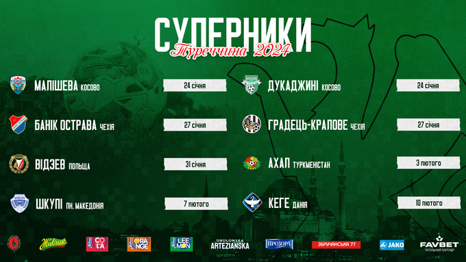 Обновлено. По уточненным данным, Оболонь сыграет с Малишево (Косово) 24 января в 10:00, а с Дукаджини (Косово) встретится 25 января в 11:00.