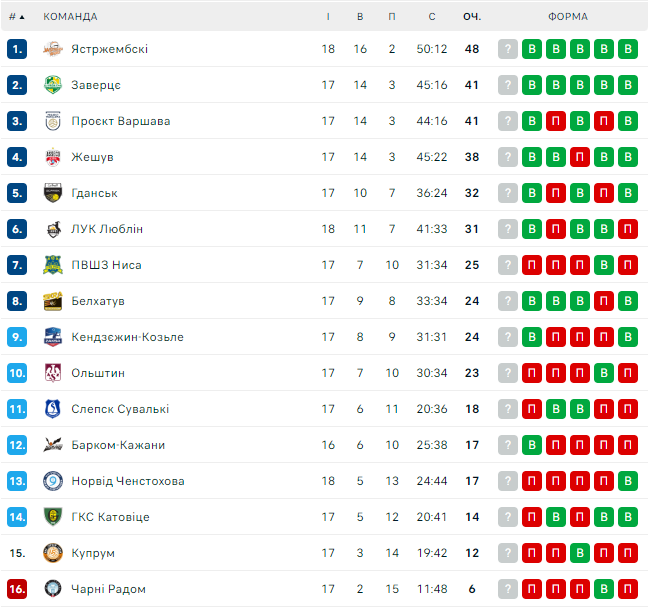 Львовская команда занимает 12-е место среди 16 команд, имея 17 очков (6 побед и 10 поражений).