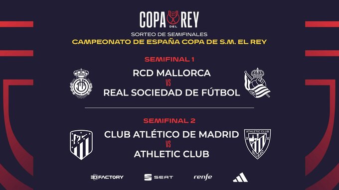 Состоялась жеребьевка полуфинальных матчей Кубка Испании. В 1/2 финала вышли «Мальорка», «Реал» Сосьедад, «Атлетико» и «Атлетик».