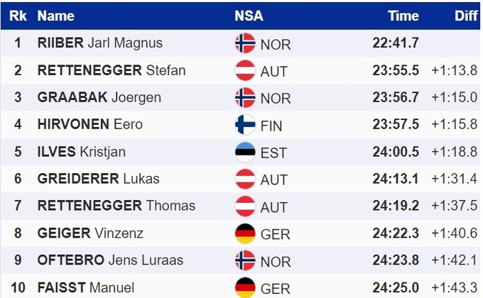 Пропускает этап в Шонахе ближайший преследователь Риибера по общему зачету Кубка мира, австриец Йоханнес Лампартер.