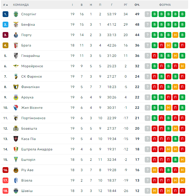 Спортинг набрал 49 очков и вернул себе лидерство, которое перед тем на несколько часов вечером перехватила Бенфика. Орлы с украинским голкипером Анатолием Трубиным имеют 48 баллов.