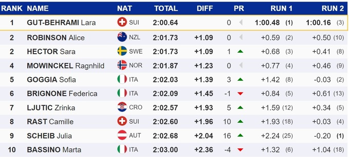 Гут-Бехрами более чем на секунду опередила ближайших преследовательниц – новозеландку Элис Робинсон и шведку Сару Хектор, которые разделили второе место.