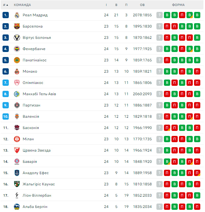 Евролига. Реал вырвал победу у Маккаби Т-А, удачный овертайм для Баварии