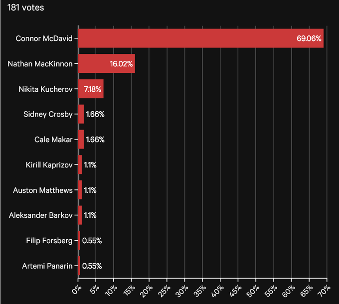 В итоге за Макдэвида проголосовали почти 70% игроков. Не такой большой отрыв, как мы думали, но все же в основном статус лучшего отдали Макдэвиду.