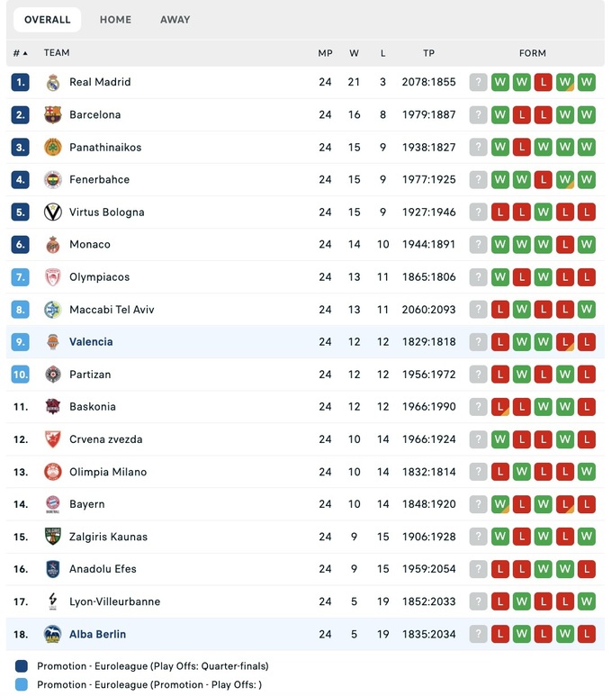Евролига. Регулярный чемпионат, 24-й раунд. 31 января.