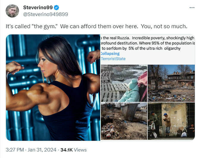 «Это называется «тренажерный зал». Мы можем позволить себе, вы – не очень», – прикрепив соответствующие фото из болот.