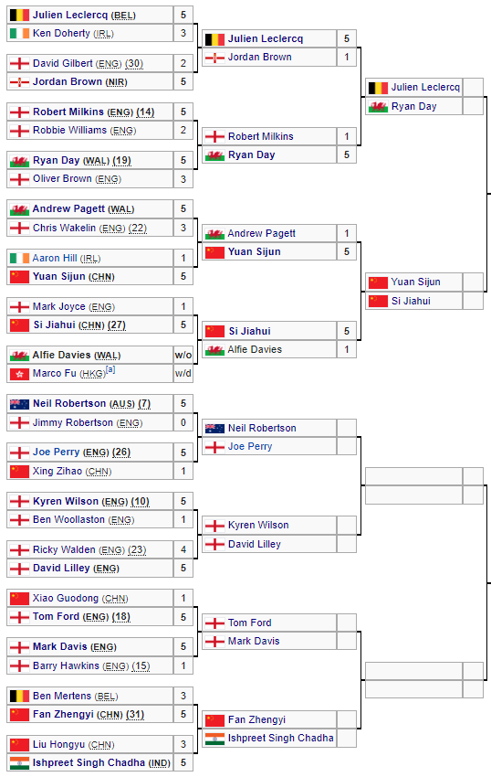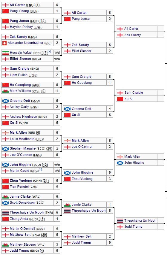 Англичанин Джадд Трамп, лучший игрок по итогам первой части сезона, победил Мэттью Селта (5:2) и вышел в 1/8 финала, где его соперником будет Тепчайя Ун-Ну из Таиланда.