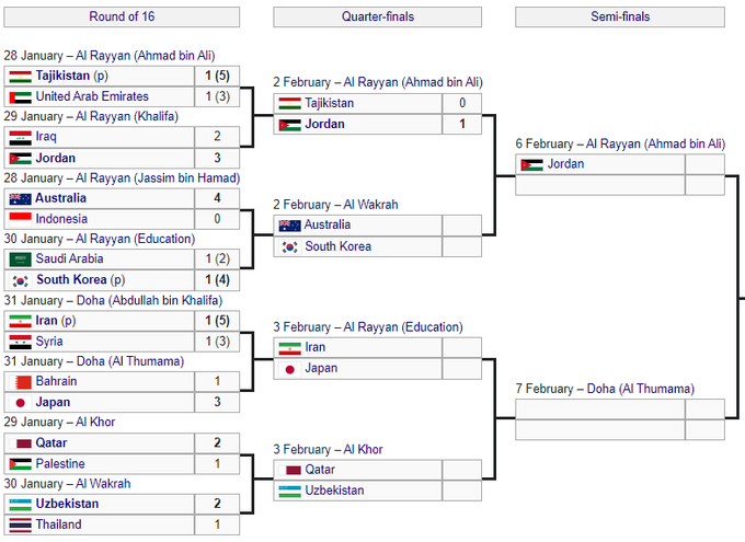 В 1/2 финала Кубка Азии Иордания сыграет с Австралией или Южной Кореей