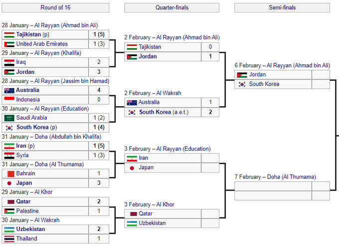 В полуфинале Южная Корея встретится с Иорданией, которая ранее обыграла Таджикистан (1:0).