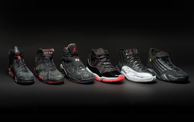 Как сообщает ESPN, в этой обуви Его Воздушество побеждал в шести финалах НБА, став MVP. Набор состоит из Air Jordan VI (1991 год), Air Jordan VII (1992-й), Air Jordan VIII (1993-й), Air Jordan XI (1996-й), Air Jordan XII (1997-й) и Air Jordan XIV (1998-й). При этом на некоторых парах лично оставил свой автограф владелец обуви.