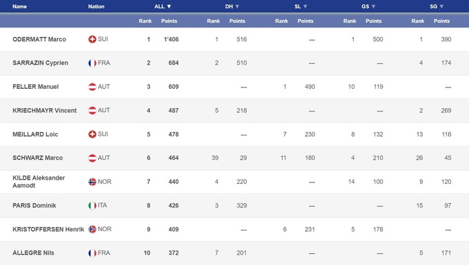 Лидер сезона в зачете слалома, Мануэль Феллер, в итоге остался без подиума – четвертое место. Впрочем, при таких результатах его соперников такой стабильности должно хватить для завоевания малого Кубка мира. Отметим и другого австрийца, Доминика Рашнера, который сейчас находится в отличной форме. В Шамони он поделил пятое место с Хенриком Кристофферсеном, до этого у него был подиум в Адельбодене и седьмое место в Венгене.