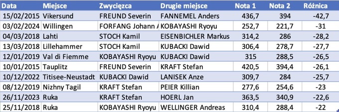 Да и в целом как-то странно было бы сомневаться в закономерности победы человека, который выиграл у ближайшего преследователя 31 балл. Это второй самый большой разрыв в личных турнирах Кубка мира в эпоху компенсаций за ветер и изменения длины разгона (то есть с середины сезона 2009/2010). Больше выиграл только Зеверин Фройнд у Андерса Фаннемеля в 2015 году в Викерсунде (42,7 балла), но то были соревнования на полетном трамплине.