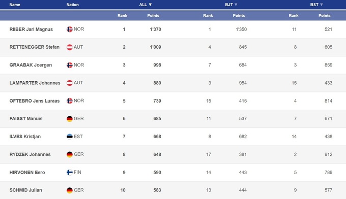 Еще стабильнее был Рёю Кобаяси, который дважды занял второе место, при чем в субботу совершил рейд с 15-го места после первой попытки. Японец также приблизился к Крафту и теперь отстает от лидера Кубка мира на 233 очка. Учитывая, что впереди еще ровно половина личных стартов Кубка мира (16 из 32), то хоронить интригу пока что точно не стоит. Для Кобаяси воскресное второе место стало 116-м в карьере попаданием в топ-10 на Кубке мира. По этому показателю он сравнялся с Андреасом Кофлером, однако, если австрийцу для того, чтобы достигнуть такой цифры понадобилось 298 стартов на Кубке мира, то Кобаяси – всего 187.