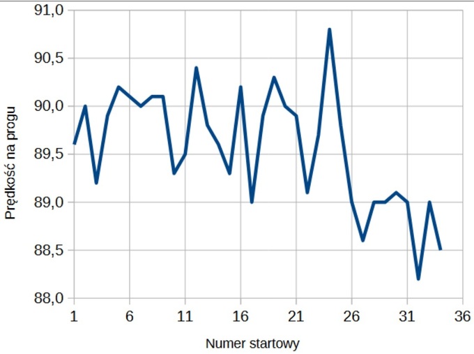 В субботу в целом происходило то же самое, и деградацию состояния лыжни лучше всего иллюстрирует график скоростей прыгунов по ходу первой попытки. Слова здесь лишни: