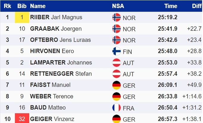 Двоеборье. Вторая подряд победа Риибера, Мазурчук – 45-й