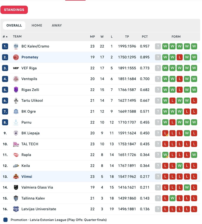 4 февраля в 18:00 пройдет матч Латвийско-Эстонской баскетбольной лиги между командами «Виймси» и «Прометей».