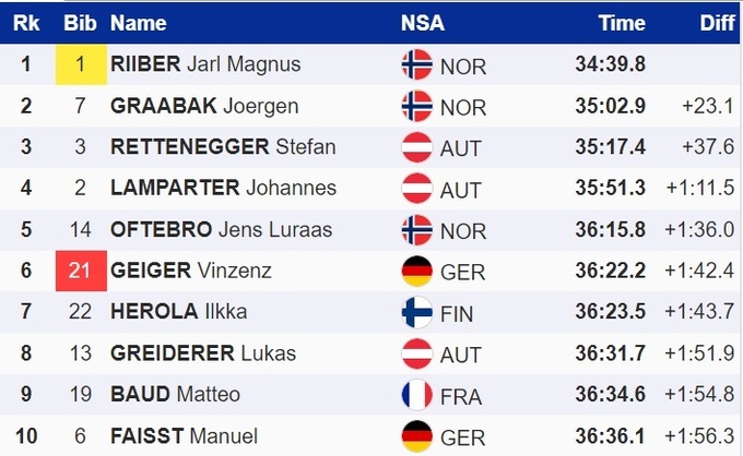 Двоеборье. Риибер выиграл многодневку в Зеефельде
