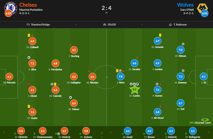 Оценки WhoScored за матч Челси – Вулверхэмптон – 2:4