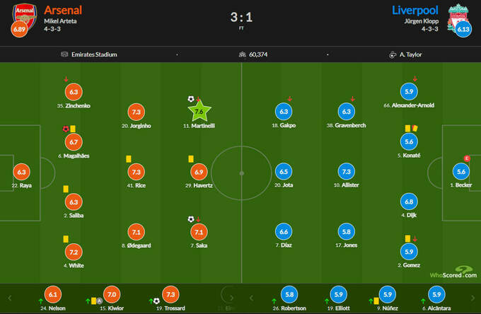 Оценки WhoScored за матч Арсенал – Ливерпуль – 3:1