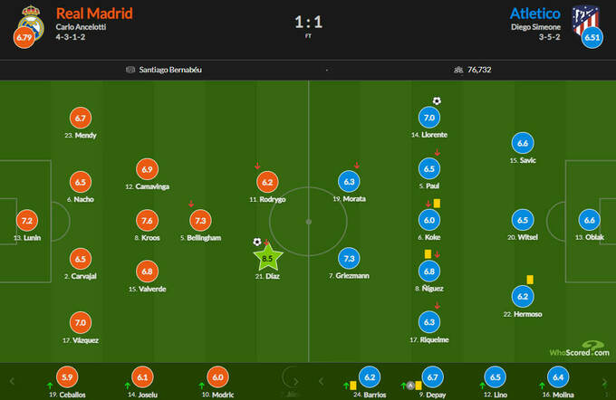 Оценки WhoScored за матч Реал – Атлетико – 1:0