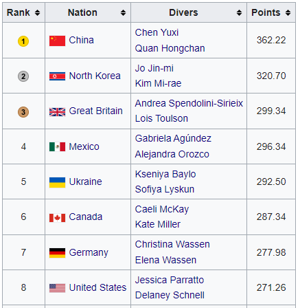 Синхрон, 10 м вышка, женщины