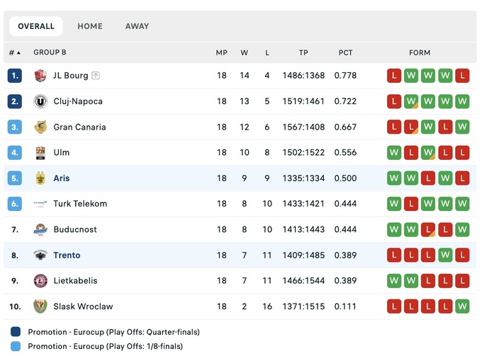 Согласно регламенту турнира в плей-офф «Прометей» встретится с командой, занявшей 5 место в группе В. По итогам группового этапа соперником «титанов» в плей-офф стал греческий клуб «Арис» из Салоники. Матч состоится 12 или 13 марта, а время станет известно позже.