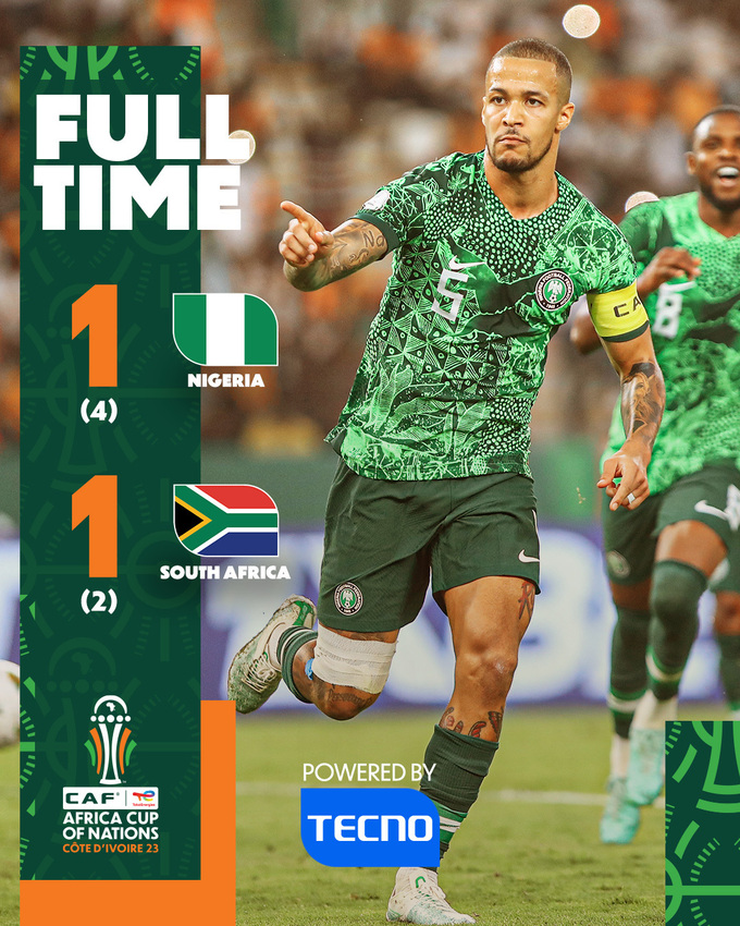 В первом полуфинале сборная Нигерии обыграла ЮАР по пенальти – 1:1 (пен. 4:2). У нигерийцев гол забил Уильям Трост-Энонг с пенальти на 67-й минуте. А в конце основного времени, на 90-й минуте, Тебохо Мокоэна сравнял счет, также забив 11-метровый. В футбольной лотерее фортуна улыбнулась команде Нигерии.