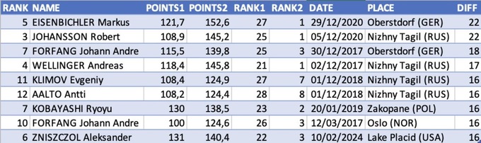 Историческим получился субботний день в Лейк Плесиде для сборной Италии. Восьмое место в личном турнире занял Джованни Брезадола, 12-е – Алекс Инсам. Для обоих это лучшие результаты в карьере. В предыдущий раз сразу двум итальянским прыгунам удавалось попасть в топ-12 на Кубке мира еще 29 марта 1992 года в Планице: тогда 9-м стал Иван Лунарди, а 11-м – Роберто Чекон. Суммарно же 54 очка, которые заработали итальянцы в субботу – это их лучший урожай на Кубке мира с 28 января 2007 года, когда Андреа Морасси сенсационно стал третьим в Оберстдорфе.