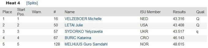 Шорт-трек. Сидерко с рекордом вышла в четвертьфинал Кубка мира
