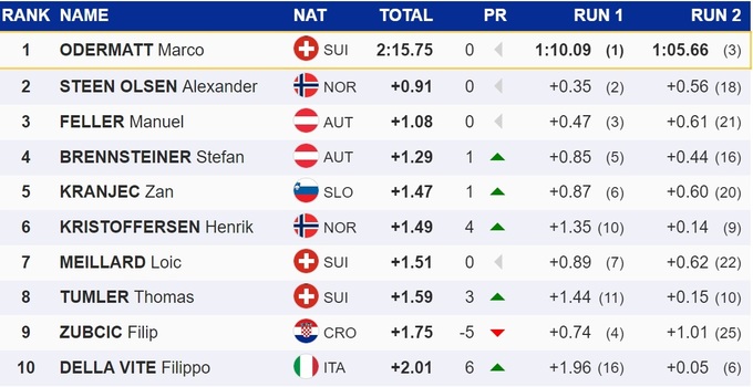 Компанию Одерматту на подиуме составили норвежец Александер Стеен Ольсен и австриец Мануэль Феллер.