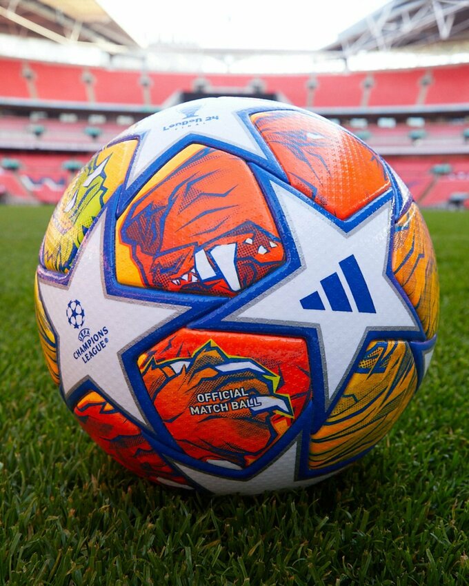 Решающий матч пройдет в Лондоне 1 июня. На мяч нанесены изображения львов, которые символизируют историю и культуру Великобритании и Лондона.