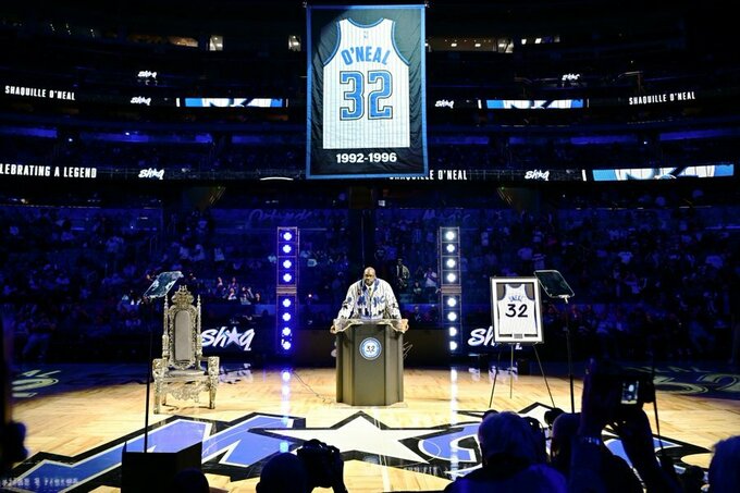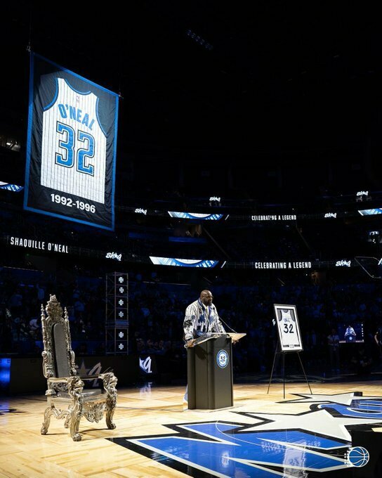 Майка О'Нила с номером 32 была поднята под своды домашней арены команды на торжественной церемонии 13 февраля, Шак наблюдал за этим с установленного на паркете трона.