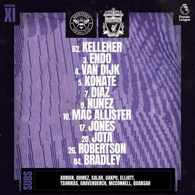 «Ливерпуль»: Келлехер, Ван Лейк, Конате, Робертсон, Бредли, Эндо, МакАллистер, Джонс, Диас, Жота, Нуньес