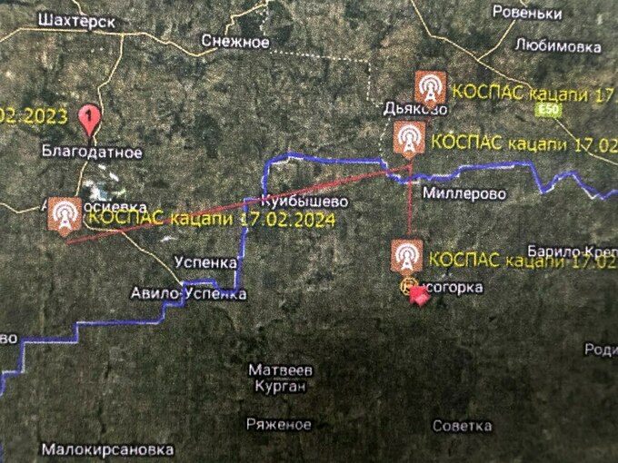 Олещук: «Есть такая международная спутниковая поисково-спасательная система – Коспас-Сарсат (Cospas-Sarsat). При авариях она оповещает о местонахождении персональных радиобуев пилотов. Как видим, система – рабочая! На фото – сработало аж четыре Cospas-Sarsat (точки на карте) – ищите братьев в этих районах! Не благодарите!»